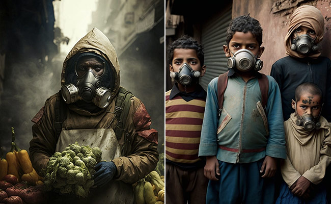 इन तस्वीरों को AI की मदद से बनाई गई है. तस्वीरों में आप देख सकते हैं कि कैसे दिल्लीवासी मास्क के साथ अपनी ज़िंदगी जी रहे हैं. ये मास्क बहुत ही खतरनाक है. देखा जाए तो ये तस्वीरें हमारे लिए बेहद ज़रूरी है. अगर समय पर हम नहीं चेते तो आने वाले दिनों में हमारे साथ ऐसी ही समस्याएं हो सकती हैं. आइए और तस्वीरों को देखते हैं.