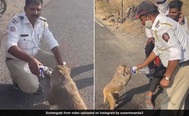 इन दिनों एक प्यासे बंदर को पानी पिलाते एक पुलिस कांस्टेबल का वीडियो सोशल मीडिया पर तेजी से वायरल हो रहा है. जिसे देखकर हर किसी का दिल पसीज गया. वीडियो मुंबई-अहमदाबाद मार्ग (Mumbai-Ahmedabad Route) के मालशेज घाट का बताया जा रहा है. वीडियो में एक पुलिस कांस्टेबल को गर्मी से त्रस्त एक बंदर की जान बचाते देखा जा रहा है. वीडियो में एक पुलिस कांस्टेबल को एक बंदर को पानी पिलाने के लिए एक बोतल पकड़े हुए देखा जा सकता है. बंदर भी बोतल को हाथ से पकड़कर अपनी प्यास बुझाता नजर आ रहा है.