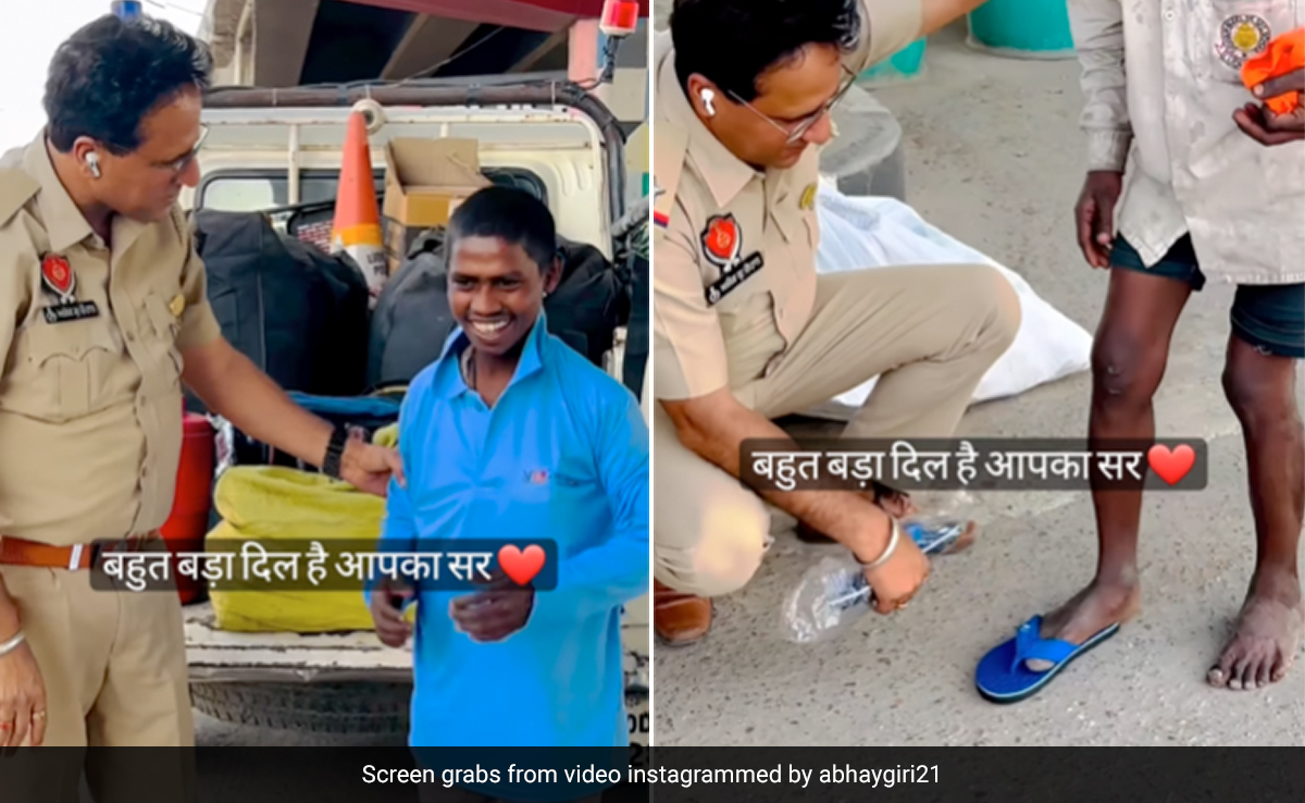 अभय गिरी द्वारा इंस्टाग्राम पर शेयर किए गए इस वीडियो में पंजाब (Punjab) का एक पुलिसकर्मी (policeman) एक कचरा बीनने वाले (rag picker) को पानी की बोतल देता दिख रहा है. जैसे ही क्लिप आगे बढ़ती है, पुलिस वाले लड़के को चप्पल और पहनने के लिए नए कपड़े भी देते हैं. इस दौरान आप देख सकते हैं कि लड़के के चेहरे की खुशी की कोई कीमत नहीं है.
