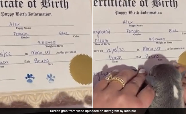 पिल्ले का नाम एलेक्स रखा गया था. उसका नाम जन्म प्रमाण पत्र पर उसके माता-पिता के नाम के साथ-साथ उसकी जन्मतिथि भी छपी है. मालिक ने छोटे कुत्ते को पकड़ा और प्रमाण पत्र पर उसका पंजा दबा दिया. पंजा की छाप बिल्कुल मनमोहक लगती है.