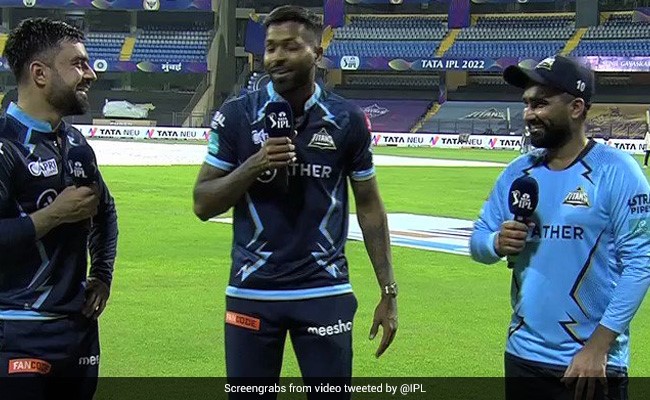 IPL 2022 बहुत ही शानदार तरीके से चल रहा है. देश और और दुनिया के क्रिकेट फैंस इस गेम को लेकर बहुत ही ज़्यादा उत्साहित हैं. देखा जाए तो आईपीएल में गुजरात टाइटंस काफी अच्छा कर रही है. ख़ास कर राहुल तेवतिया (Rahul Tewatia) , इन्होंने आईपीएल 2022 में बल्ले से कमाल का प्रदर्शन किया है. गुजरात टाइटंस (Gujarat Titnas) से खेल रहे तेवतिया ने सनराइजर्स हैदराबाद के खिलाफ 21 गेंद पर नाबाद 40 रन बनाकर टीम की जीत में महत्वपूर्ण भूमिका निभाई थी. इतना ही नहीं, राहुल तेवतिया ने इससे पहले पंजाब किंग्स के खिलाफ भी अंतिम 2 गेंद पर 2 छक्के मारकर टीम को रोमांचक जीत दिला चुके हैं. गुजरात के लिए राहुल एक उम्मीद बन चुके हैं. अभी हाल ही में सोशल मीडिया पर राहुल, हार्दिक और राशिद खान का एक वीडियो वायरल हो रहा है. इस वीडियो में तीनों खिलाड़ी आपस में बात करते हुए नज़र आ रहे हैं.