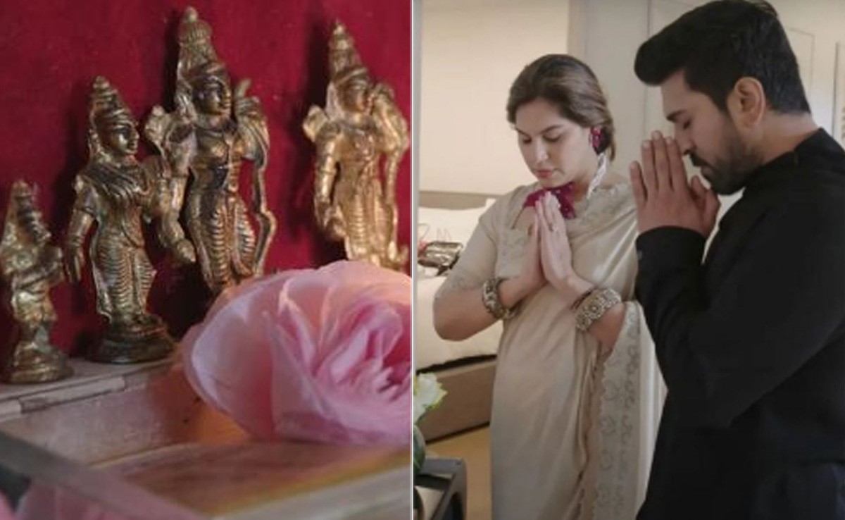अभी हाल ही में RRR फिल्म ने पूरी दुनिया में तहलका मचा दी है. इस फिल्म ने सभी मामलों कई रिकॉर्ड्स बनाए हैं. देखा जाए तो इस फिल्म के नाटू नाटू गाने से इसकी प्रसिद्धि बहुत ही ज्यादा बढ़ चुकी है. वर्तमान में राम चरण (Ram Charan) एक ऐसा नाम है जिसे दुनियाभर के सिनेमा लवर्स जानते हैं. नाटू नाटू में राम चरण और जेआर एनटीआर ने ज़बरदस्त डांस परफ़ॉर्म किया है. उनकी एनर्जी को देखने के बाद पूरी दुनिया दंग है. अभी हाल ही में सोशल मीडिया पर एक वीडियो वायरल हुआ है. इस वीडियो में देखा जा सकता है कि राम चरण अपनी पत्नी के साथ भगवान श्रीराम की पूजा करते हुए नज़र आ रहे हैं. वीडियो में सुना जा सकता है कि वो मंदिर को हमेशा अपने साथ ले जाते हैं.