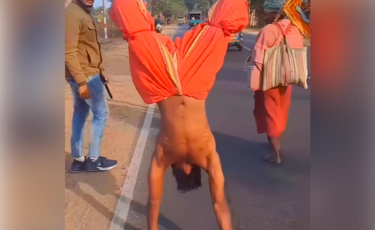 रामलला के दर्शन करने के लिए एक भक्त ने भक्ति की सभी सीमाओं को लांघ दिया और वो अपने पैरों के बल नहीं, बल्कि अपने हाथों से अयोध्या के लिए चल पड़ा. वीडियो में देखा जा सकता है कि, शीतलहर के बीच ये रामभक्त अपने हाथों को नीचे रखकर चल रहा है, पैर हवा में हैं और बंधे हुए हैं.