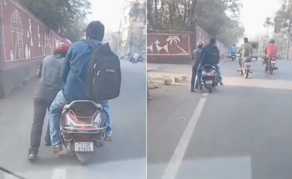 Rapido Bike Drive Video: हाल ही में इंटरनेट पर एक वीडियो खूब वायरल हो रहा है, जिसे देखकर लोग दंग है. वीडियो में एक शख्स स्कूटर को धक्का लगाते नजर आ रहा है, जबकि दूसरा व्यक्ति स्कूटर पर सवार है. इंसानियत को शर्मसार करता यह वीडियो तेलंगाना की राजधानी हैदराबाद का बताया जा रहा है, जहां 'रैपिडो' स्कूटर (बाइक) का पेट्रोल खत्म होने पर चालक को स्कूटर को धक्का लगाते देखा जा सकता है. वीडियो में देखा जा सकता है कि, इस स्थिति में भी कस्टमर स्कूटर से उतरने का नाम नहीं ले रहा है.