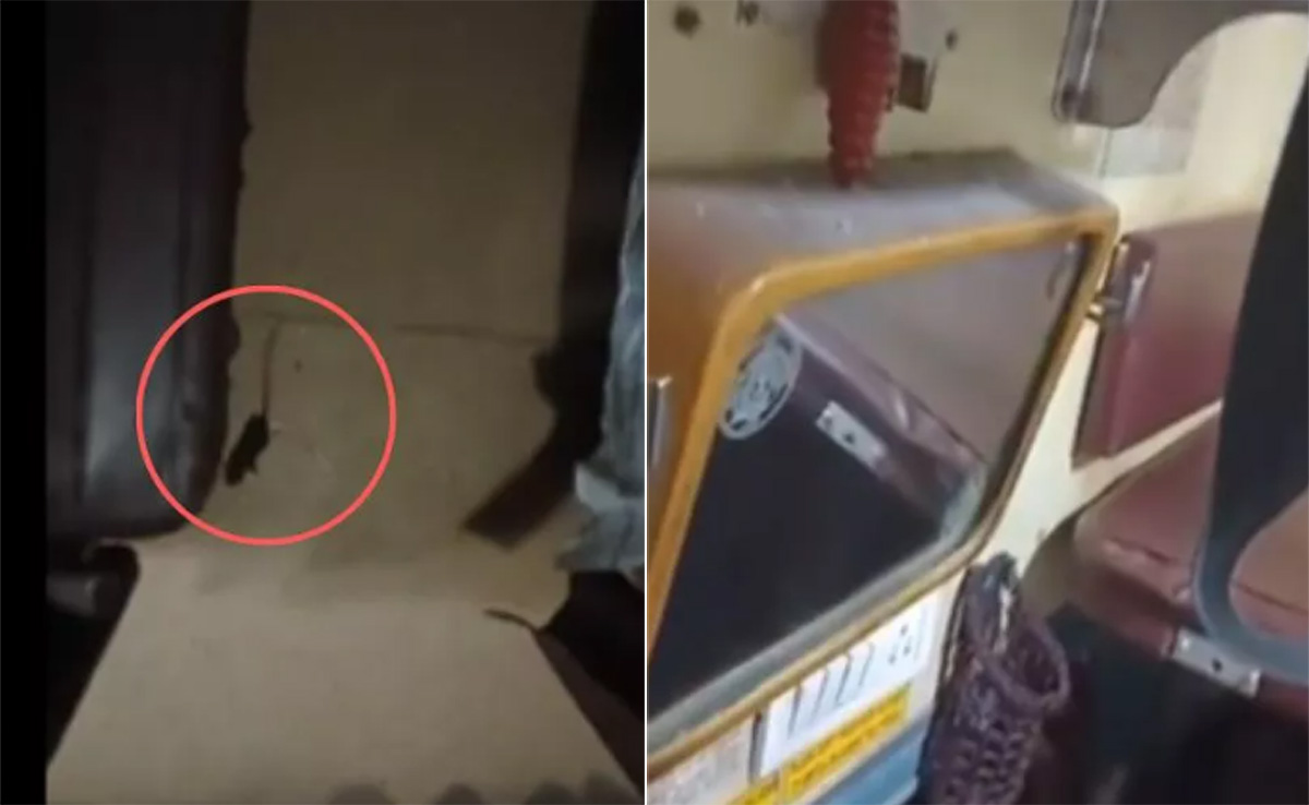 Woman Spots Rat Inside Train: हाल ही में एक बार फिर चूहे से जुड़ा एक वीडियो इंटरनेट पर लोगों को हैरान कर रहा है. वायरल हो रहे इस वीडियो में एक चूहा कोच में मंडराता नजर आ रहा है. चूहे को देखकर एक महिला यात्री बुरी तरह डर गई. इस बीच महिला ने चूहे का वीडियो बनाकर ट्विटर पर पोस्ट कर रेलवे को टैग कर दिया. अब यही वीडियो सोशल मीडिया के अलग-अलग प्लेटफॉर्म पर खूब वायरल हो रहा है.