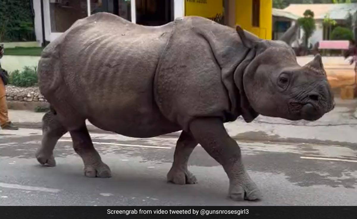 Rhino Walking Calmly On A Main Road: अक्सर खुले मैदानों, बाजारों और सड़कों पर मवेशियों को चलता देखा जाता है, जो की आम बात है, लेकिन क्या हो जब सड़क पर खुलेआम बड़े आराम से एक जंगली जानवर को टहलते देखा जाये, यकीनन आपकी भी सिट्टी-पिट्टी गुल हो जाएगी, लेकिन ऐसा सच में हुआ है. सोशल मीडिया पर हाल ही में एक ऐसा ही वीडियो लोगों को चौंका रहा है, जिसमें एक गैंडा बड़े आराम से पब्लिक के बीच से गुजरता नजर आ रहा है.