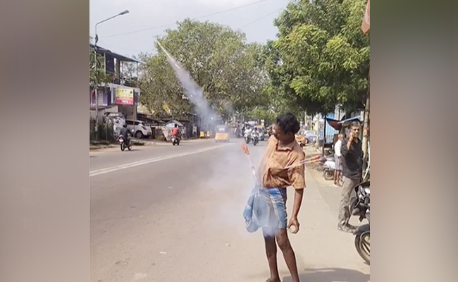 Rocket Firing From Lungi Video: सोशल मीडिया पर कब क्या देखने को मिल जाए कह नहीं सकते. अक्सर ऐसे-ऐसे वीडियोज सामने आते रहते हैं, जिन्हें देखकर लोगों का सिर चकरा जाता है. वहीं कुछ वीडियोज इतने अजीबोगरीब होते हैं, जिसे देखकर लोगों का हंस-हंसकर बुरा हाल हो जाता है. हाल ही में एक ऐसा ही वीडियो सामने आ रहा है, जिसे देखकर आपके भी हक्के-बक्के रह जाएंगे. हैरान कर देने वाले इस वीडियो में एक शख्स लुंगी में रॉकेट को फंसाकर उसे चलाता नजर रहा है. इस दौरान शख्स के इस अजीबोगरीब करतब को देखकर वहां मौजूद लोगों की आंखें फटी की फटी रह गई.