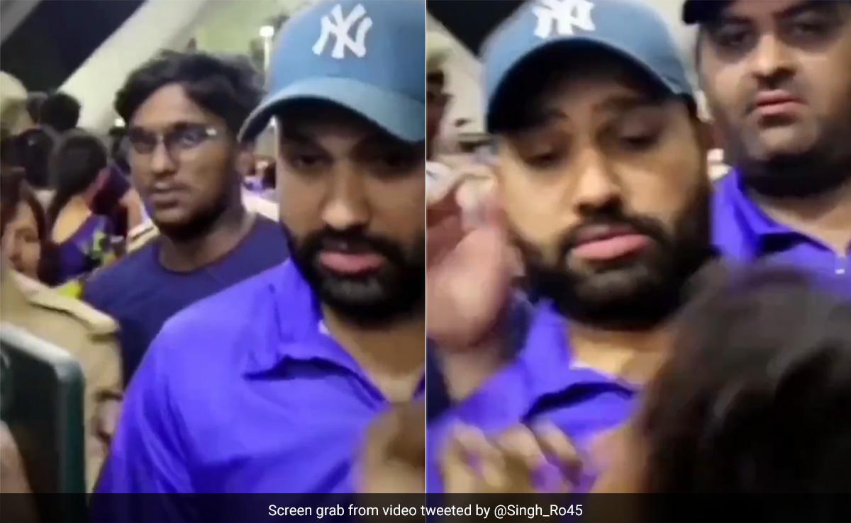 वायरल वीडियो में देखा जा सकता है कि, कैसे रोहित शर्मा अपनी टीम के साथ गाड़ी की ओर जाते हुए दिखाई दे रहे हैं, इसी दौरान उनका एक फैन सेल्फी के लिए आगे बढ़ता है और हंगामे के बीच अपने गाल पर किस की मांग रख देता है. वीडियो में पहले फैन सेल्फी लेने के लिए रोहित शर्मा से कहता है, लेकिन जब एमआई कप्तान विनम्रता से मना कर देते हैं, तो आप गाल आगे कर के शख्स किस की मांग रख देता है. फैन की यह डिमांड देख हिटमैन पूरी तरह चौंक जाते हैं और वो समझ ही नहीं पाते हैं कि क्या हो रहा है. इंटरेनट पर रोहित शर्मा के इस वायरल वीडियो को खूब देखा और शेयर किया जा रहा है. यूजर्स इस पर तरह-तरह के मजेदार रिएक्शन दे रहे हैं. जानकारी के लिए बता दें कि, रोहित शर्मा की अगुवाई वाली मुंबई इंडियंस आईपीएल 2023 में शानदार फॉर्म में दिखाई दी है.