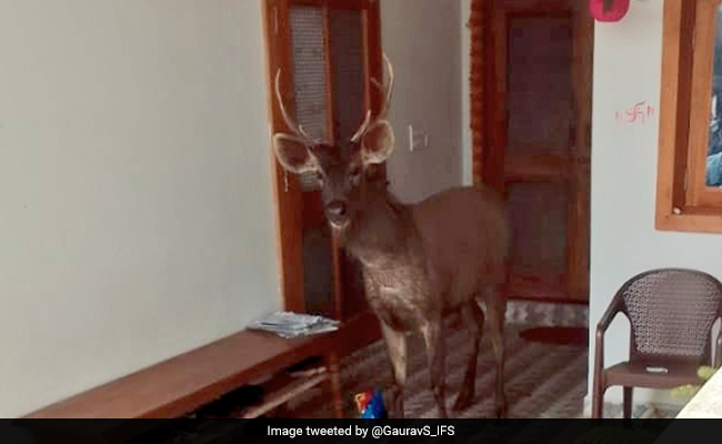 भारतीय वन सेवा के अधिकारी गौरव शर्मा ने एक घर के लिविंग रूम के अंदर खड़े सांभर हिरण की एक तस्वीर शेयर की. उन्होंने तस्वीर को कैप्शन दिया, ''यह सांभर आज मशहूर हो गया. कटनी के विजयरावगढ़ में आरओ विवेक जैन और उनकी टीम द्वारा एक घर से लगभग 1000 लोगों ने इसे रेस्क्यू करते देखा.''