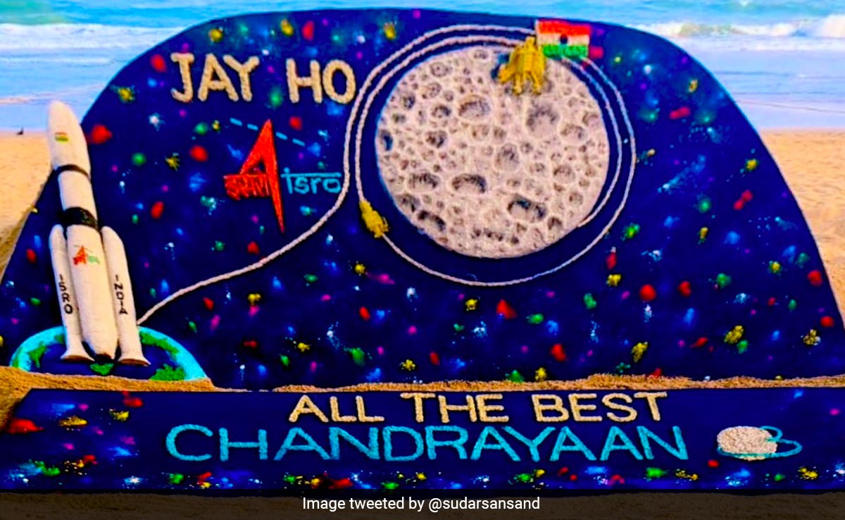 आखिर वो दिन आ ही गया. भारत आज चंद्रमा पर उतरने का एक और प्रयास कर रहा है. अगर यह सफल रहा, तो संयुक्त राज्य अमेरिका, रूस और चीन के बाद भारत चंद्रमा (Moon) पर रोवर संचालित करने वाला चौथा देश होगा और निषिद्ध दक्षिणी ध्रुव के पास उतरने वाला पहला देश होगा. चंद्रयान-3 चंद्र मिशन (Chandrayaan-3 moon mission) पर सिर्फ भारत ही नहीं बल्कि दुनिया भर की नजरें हैं. लोग अपने-अपने तरीके से इसरो (ISRO) के महत्वाकांक्षी अंतरिक्ष यान का समर्थन कर रहे हैं. सैंड आर्टिस्ट सुदर्शन पटनायक (Sand artist Sudarsan Pattnaik) ने एक्स पर एक तस्वीर शेयर की, जिसमें चंद्रयान-3 के चंद्रमा पर उतरने की खुशी में उनके छात्रों द्वारा बनाई गई एक कलाकृति है.