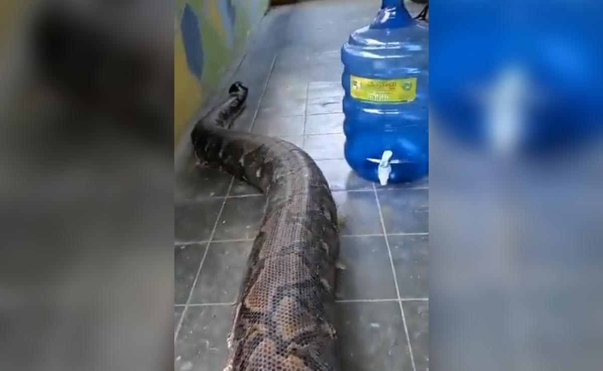 महज 17 सेकंड के इस वीडियो में एक रेटिकुलेटेड पाइथन यानी जालीदार अजगर नजर आ रहा है, जिसे दुनिया का सबसे लंबा सांप माना जाता है, जिसकी लंबाई 30 फीट से भी अधिक हो सकती है. वहीं इसका वजन 300 पाउंड से अधिक बताया जाता है. रेटिकुलेटेड पाइथन सांप, बिल्ली और सूअर जैसे बड़े जानवरों को बड़ी आसानी से अपना शिकार बना लेते हैं. वायरल हो रहे इस वीडियो में एक विशाल अजगर बड़ी दूर तक जमीन पर फैला नजर आ रहा है, जिसे देखकर किसी की हालत खराब होना लाजिमी है.