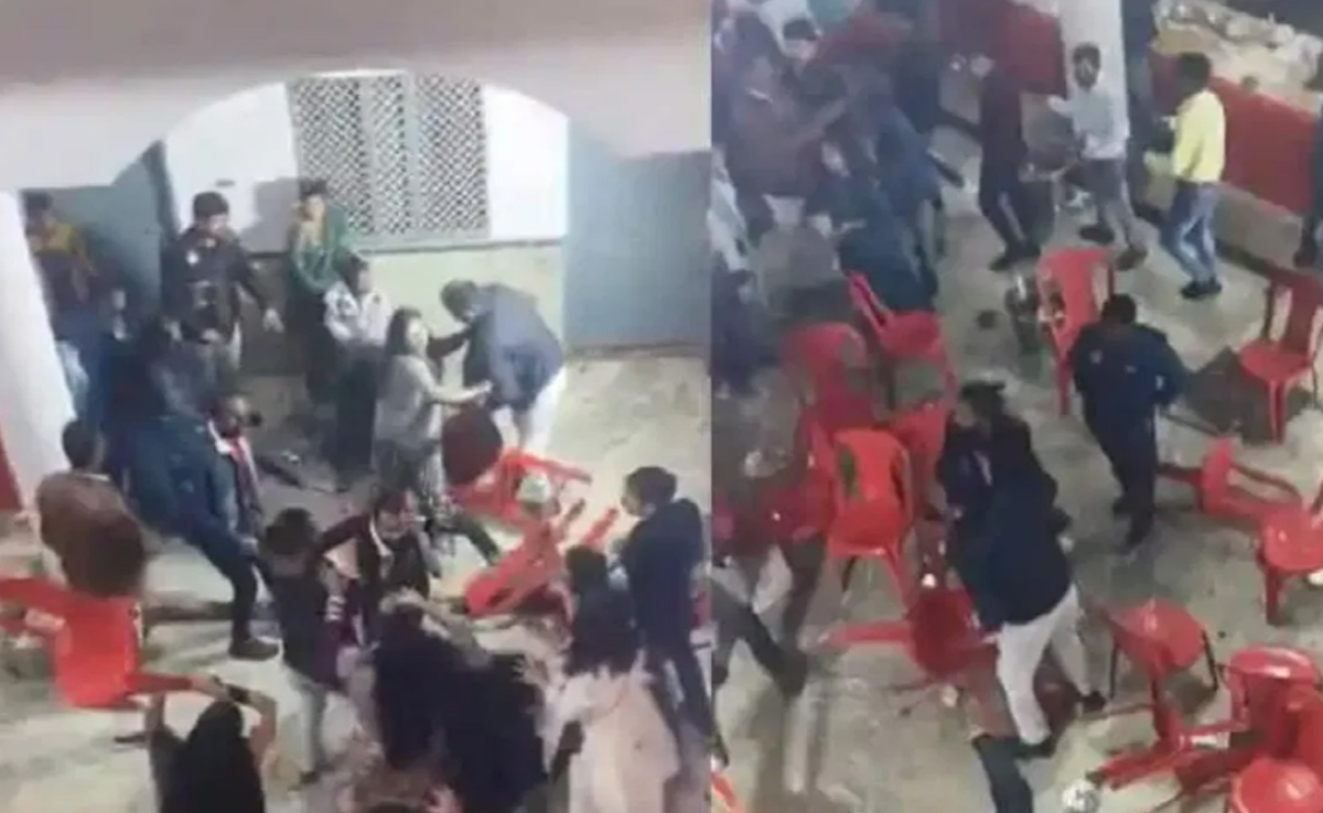 इन दिनों वायरल हो रहा यह वीडियो लखनऊ के धर्मशाला का बताया जा रहा है. वीडियो में देखा जा सकता है कि, कैसे देखते ही देखते घराती और बाराती आपस में इस कदर भिड़ गए कि, चंद मिनट में वैवाहिक मंडप अखाड़े में तब्दील हो गया. वीडियो के मुताबिक, किसी बात को लेकर वर और वधू पक्ष में हंगामा शुरू हो गया. इस बीच दोनों पक्षों के बीच कुर्सियां चलनी शुरू हो गई और बात लात-घूंसे तक पहुंच गई. इस दौरान वहां मौजूद लोग भी हक्के-बक्के रह गए और किसी तरह दोनों पक्षों को शांत करने में जुट गए.