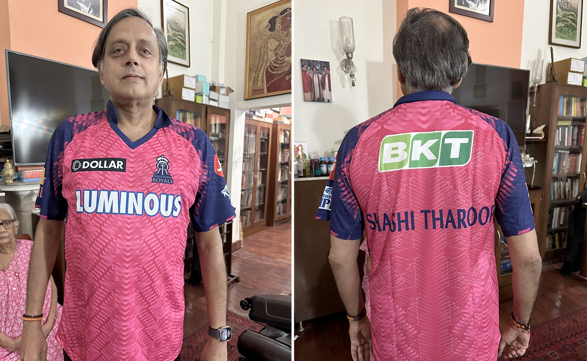 राजस्थान रॉयल्स ने शशि थरूर को एक खास जर्सी गिफ्ट की है. शशि थरूर ने इस जर्सी के साथ अपनी फोटो ट्विटर पर पोस्ट की और टीम के लिए एक प्यारा सा मैसेज भी लिखा. खासतौर से शशि थरूर के लिए कस्टमाइज की गई इस पर्पल और ब्लू जर्सी में सामने राजस्थान रॉयल्स का एक लोगो देखा जा सकता है. जर्सी के पीछे की ओर शशि थरूर का नाम लिखा है. इस जर्सी को पहनकर फोटो पोस्ट करते हुए शशि थरूर ने राजस्थान रॉयल और संजू सेमसन को धन्यवाद दिया है.
