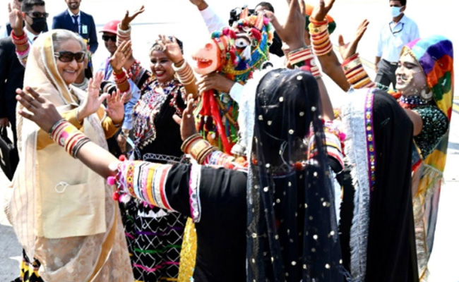 समाचार एजेंसी एएनआई के अनुसार, बांग्लादेश की प्रधानमंत्री शेख हसीना का जयपुर हवाई अड्डे पर शानदार स्वागत किया गया. इस बीच स्थानीय कलाकारों ने नृत्य किया, जिनके साथ शेख हसीना भी थिरकतीं नजर आईं. इसके बाद प्रधानमंत्री शेख हसीना अजमेर में सूफी संत ख्वाजा मोइनुद्दीन चिश्ती की दरगाह पर मत्था टेकने भी पहुंचीं. इस दौरान उन्हें दरगाह कमेटी की तरफ से तलवार भेंट की गई.