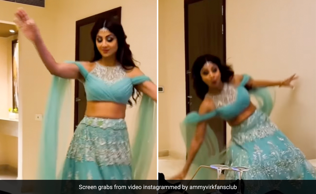 इंस्टाग्राम पर शेयर हुए इस वीडियो में शिल्पा शेट्टी पंजाबी सिंगर और एक्टर अम्मी विर्क के बेहद पॉपुलर सॉन्ग ‘वांग दा नाप' पर डांस कर रही हैं. शिल्पा ने इस दौरान ग्रीन और सिल्वर कलर का हेवी लहंगा पहन रखा है और पंजाबी डांस भांगड़ा करती नजर आती हैं, लेकिन भांगड़ा के स्टेप्स करते हुए उनका पैर अचानक फिसल जाता है और वह गिर पड़ती है.