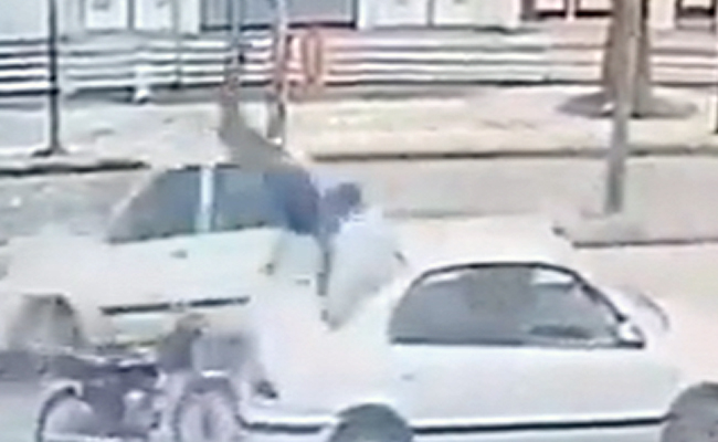सोशल मीडिया पर आये दिन सड़क दुर्घटनाओं के कई वीडियोज सामने आते रहते हैं. इन में से कुछ वीडियोज रोंगटे खड़े कर देते हैं, तो कुछ में जिंदगियां बाल-बाल बचती नजर आती हैं. हाल ही में वायरल इस वीडियो को देखकर इस बात का अंदाजा लगाया जा सकता है. वायरल हो रहा यह वीडियो वाकई हैरान कर देने वाला है. वीडियो में एक बाइक सवार शख्स कार से टकराते हुए एकाएक उसकी छत पर पहुंच जाता है. वीडियो देखने में तो फिल्मी है, लेकिन वीडियो में शख्स को बाल-बाल बचते देखा जा सकता है.