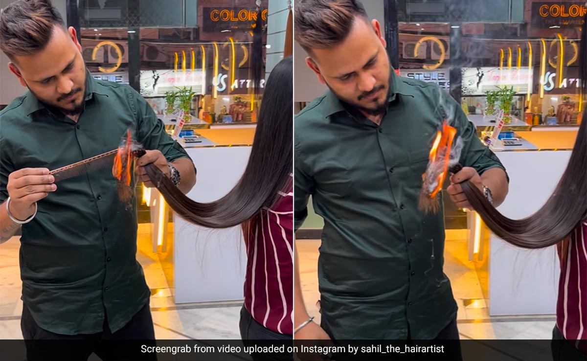 वायरल हो रहे इस वीडियो की शुरुआत में एक शख्स लड़की के बाल काटने की तैयारी करता नजर आता है, लेकिन अगले ही पल शख्स लड़की के बालों के निचले हिस्से में लाइटर से आग लगा देता है, जो तेजी से फैलने लगती है. इतना ही नहीं बाल जल-जलकर नीचे भी गिरने लगते हैं. इसके बाद शख्स अपनी पेंट की जेब में से एक कंघी निकालता है और बालों को झाड़ने लगता है. वीडियो में बाल काटने का यह तरीका यकीनन हैरान कर देने वाला है.