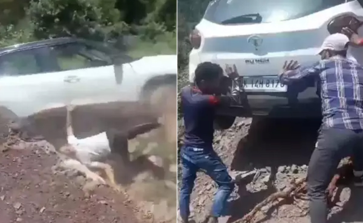 वीडियो में एक कार को आप अचानक से आउट ऑफ कंट्रोल होते देखेंगे. कार के खाई में गिरते इस वीडियो को देखकर यकीनन आपकी भी धड़कनें तेज हो जाएंगी. वीडियो में दो लोग पीछे से कार को धक्का मारने की कोशिश कर रहे होते हैं, लेकिन ड्राइवर कार को नहीं संभाल पाता और अचानक ही गाड़ी बेलगाम होकर नीचे खाई में गिर जाती है. इस बीच ड्राइवर भी कार से कूदकर किसी तरह अपनी जान बचाता है.