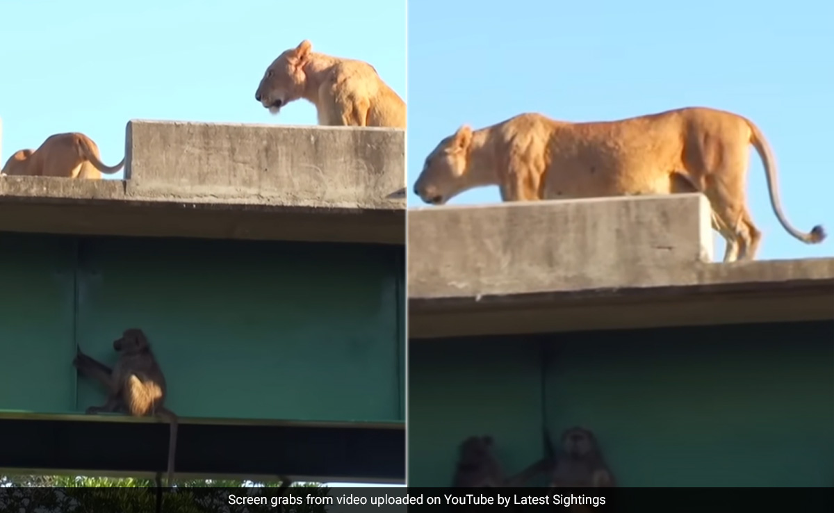 अक्सर जंगल में खूंखार जानवरों के सामने आने से कई कमजोर जानवर बचते नजर आते हैं, क्योंकि अगर गलती से भी सामना हो गया तो शिकारी का शिकार बनना लगभग तय ही होता है. इंटरनेट पर अक्सर ऐसे वीडियो देखने को मिलते रहते हैं, जिनमें कमजोर जानवरों को खूंखार जानवरों का शिकार बनते देखा जाता है. हाल ही में एक ऐसा ही वीडियो लोगों की धड़कनें तेज कर रहा है, जिसमें शेरों के झुंड से खुद को बचाने के लिए पुल के नीचे बंदरों को छिपते देखा जा सकता है.