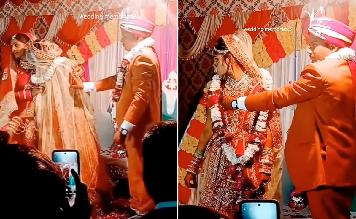 वीडियो की शुरुआत में देखा जा सकता है कि, एक दूल्हा-दुल्हन स्टेज पर खड़े हैं. इस दौरान दोनों एक दूसरे को वरमाला पहना रहे होते हैं कि, अचानक तभी दुल्हन पीछे की ओर मुड़ने लगती है. इस दौरान एक महिला आकर दुल्हन को पकड़ती नजर आती है. वीडियो में आप देखेंगे कि, दुल्हन अपनी जगह से बिना हिले पूरी मुड़ जाती है, जिसे देखकर दूल्हे के साथ-साथ वहां मौजूद हर एक शख्स हक्का-बक्का रह जाता है.