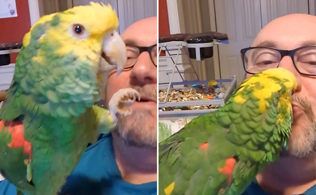 वीडियो में देखा जा सकता है कि, तोता अपने मालिक के साथ मजे में गाना गा रहा है और वीडियो के आखिर में वो अपने मालिक को एक प्यारी सी किस देता नजर आ रहा है. वीडियो देखने के बाद आप भी दंग रह जाएंगे. सोशल मीडिया प्लेटफॉर्म इंस्टाग्राम पर यह वीडियो viralhog नाम के अकाउंट से शेयर किया गया है, जिसे खूब देखा और पसंद किया जा रहा है. वीडियो देख चुके यूजर्स इस पर कमाल के रिएक्शन दे रहे हैं.