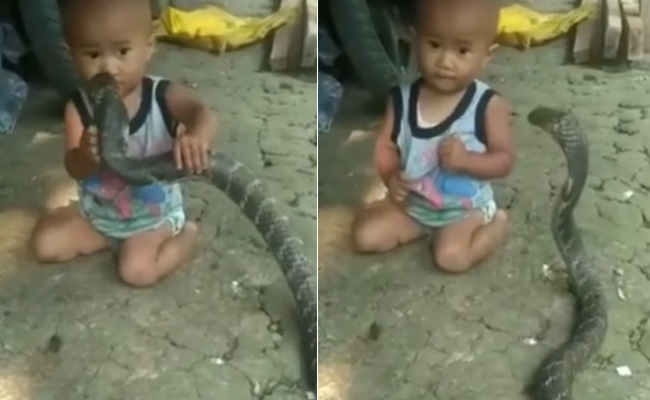 वीडियो में एक बच्चा विशालकाय सांप के पास बिना किसी डर के बैठा नजर आ रहा है. इस दौरान विशालकाय सांप धीरे-घीरे बच्चे के पास आता है. इस बीच बच्चा सांप से थोड़ा घबरा भी जाता है. वीडियो में देखा जा सकता है कि, धीरे-धीरे सांप बच्चे के चेहरे के पास पहुंच जाता है, तभी बच्चा हाथ से सांप को हटाने की कोशिश करता नजर आता है. वीडियो में आगे आप देखेंगे कि, बच्चा सांप को झटकर दूसरी तरह फेंक देता है.