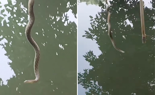 प्रकृति अपने अंदर कई ऐसे रहस्य छिपाए हुए है, जिन्हें देखकर कई बार इंसान हैरानी में पड़ जाता है, जैसा कि इस वीडियो में देखने को मिल रहा है. वीडियो में एक बड़ा सा सांप पेड़ से लटकर अनोखे अंदाज में धूम रहा है. यूं तो सांप के नाम से ही ज्यादातर लोग डर से कांप जाते हैं, देखकर अपना रास्ता बदल लेते हैं, लेकिन कई बार सांप का ऐसा अंदाज देखने को मिल जाता है, जिसे देखकर खुद की ही आंखों पर यकीन कर पाना मुश्किल हो जाता है.