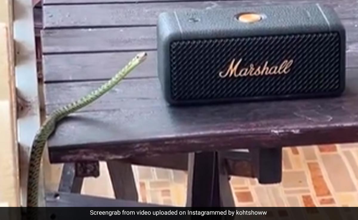 वीडियो देखने के बाद भी लोगों को अपनी आंखों पर भरोसा नहीं हो रहा है कि, क्या सच में एक सांप म्यूजिक की धुन पर डांस कर रहा है. वैसे क्या आपने कभी सांप को ऐसे म्यूजिक पर डांस करते हुए देखा है. वायरल हो रहे इस वीडियो में आप देख सकते हैं कि एक लकड़ी की टेबल पर एक ब्लूटूथ स्पीकर रखा है. स्पीकर के पास ही एक पतला और लंबा सा सांप बैठा है. स्पीकर पर रॉक म्यूजिक बज रहा है. सांप स्पीकर के पास ध्यान लगाता है और जैसे ही म्यूजिक सुनता है वो झूमने लगता है. कुछ देर बाद वो अपने शरीर को मोड़कर तेजी से हिलने लगता है. और इसी के साथ वीडियो खत्म हो जाता है.