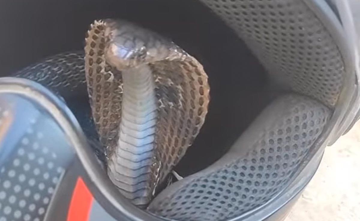 हेलमेट के अंदर छिपा बैठा था सांप
