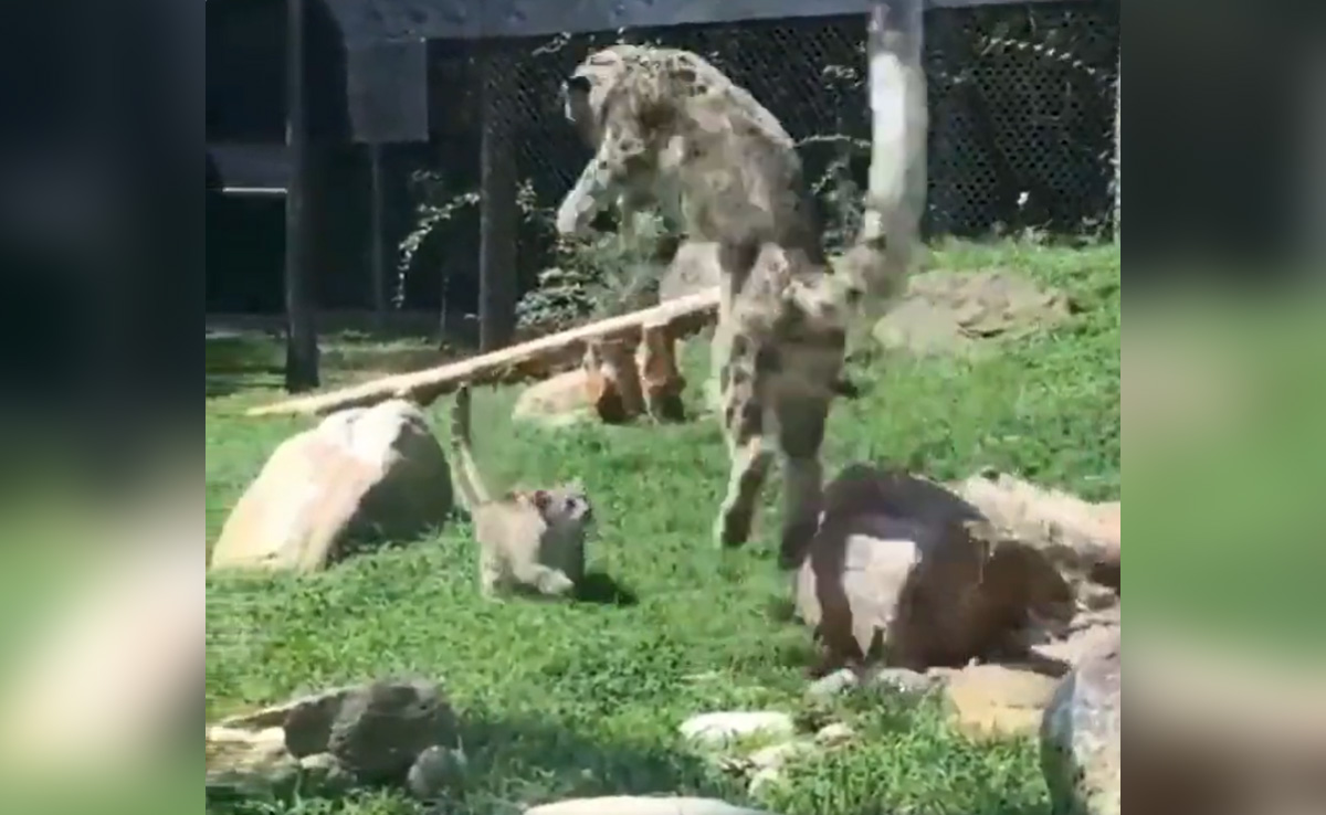 मादा तेंदुआ को भला किससे डर हो सकता है. दमदार शिकारी भी उसका बाल बांका नहीं कर सकता, लेकिन मादा तेंदुए का ये वीडियो जरा चौंकाने वाला है. नेचर इज अमेजिंग नाम के ट्विटर हैंडल ने स्नो लेपर्ड का एक वीडियो शेयर किया है. इस वीडियो में एक स्नो लेपर्ड बुरी तरह चौंक कर उछलती हुई दिख रही है. ये डर किसी बड़े भारी शिकारी का नहीं, बल्कि एक नन्हें से जीव का है. ये प्राणी कोई और नहीं इस मम्मा लेपर्ड का बच्चा है, जो दबे पांव, पत्थर के पीछे छिपते हुए उसकी तरफ आ रहा है. मां को वैसे तो अंदाजा हो जाता है कि, बच्चा छिप कर उसे डराने वाला है. उसके बावजूद उसका दिल रखने के लिए मां उसके सामने आते ही डर के मारे उछल जाती है और फिर आगे बढ़ जाती है.