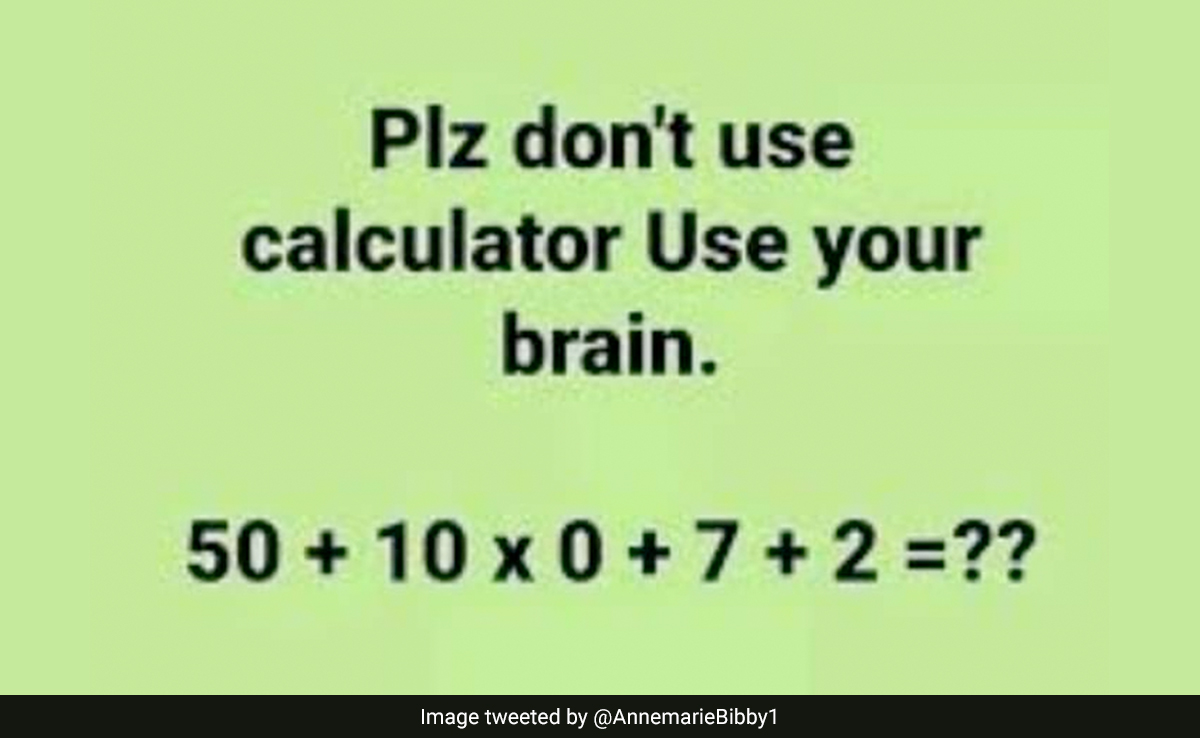 एक ट्विटर यूजर ने पोस्ट किया, “यह इस पर निर्भर करता है कि आप किस तरीके से गणना करते हैं. अगर आप केवल बाएं से दाएं क्रम में जाते हैं, तो यह 9 है. लेकिन, अगर आप संचालन/ऑपरेटर प्राथमिकता के क्रम का सही अभ्यास चुनते हैं) तो वास्तविक और सही उत्तर 59 है. इसकी गणना 50 + (10 x 0) = 50 + 0... के रूप में की जानी चाहिए. फिर 7 + 2.” दूसरे ने कहा, "उत्तर 9 है. अगर 10 x 0 () में होता तो उत्तर 59 होता," तीसरे ने कमेंट किया, “आपको संचालन के सही क्रम का उपयोग करना होगा! PEMDA कोष्ठक, घातांक, गुणा, भाग, जोड़, घटाव इसलिए पहले गुणा करें: 10x0=0 फिर जोड़ अगला है: 50+0+7+2=59.” चौथे ने कहा, “59 ही एकमात्र स्वीकार्य उत्तर है,” इस ब्रेन टीज़र के बारे में आपका क्या कहना है?