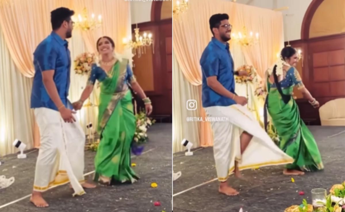 नॉन डांसर दूल्हे के डांस मूव्स लोगों को खूब पसंद आ रहा है. सगाई के बाद साउथ-इंडियन जोड़े ने स्टेज पर खूब कमर मटकाई. कपल के खूबसूरत परफॉर्मेंस पर सोशल मीडिया यूजर्स जमकर प्यार लुटा रहे हैं. वीडियो को अब तक मिलियन में व्यूज मिल चुका है. कपल ने सगाई के दो साल पूरे होने के मौके पर अपने इंस्टाग्राम अकाउंट से संगीत के खूबसूरत डांस परफॉर्मेंस का क्लिप शेयर किया है. बैकग्राउंड आवाजों से पता चल रहा है कि वहां मौजूद लोग कपल के परफॉर्मेंस को कितना ज्यादा एन्जॉय कर रहे हैं. सोशल मीडिया यूजर्स को भी साउथ इंडियन कपल का डांस काफी पसंद आ रहा है जिस वजह से वीडियो पर लाइक्स और व्यूज की बरसात हो रही है.