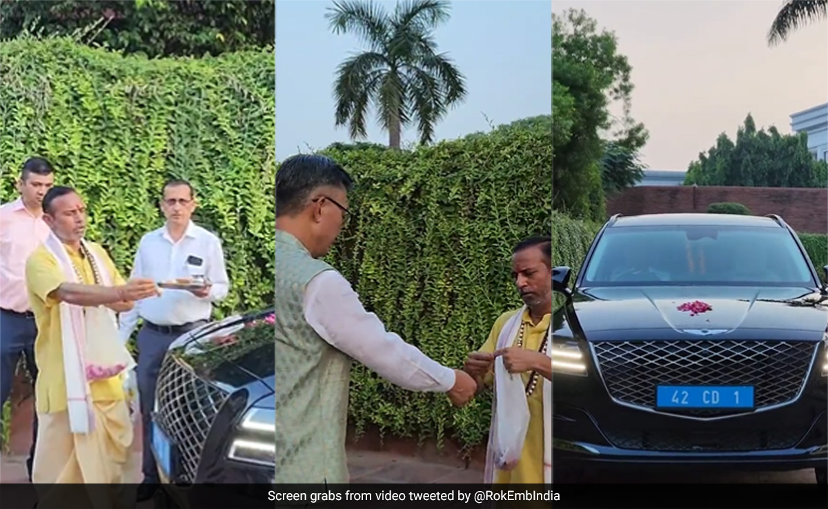 दूतावास ने एक्स पर पोस्ट किया, "हमें राजदूत के आधिकारिक वाहन के रूप में नई हुंडई जेनेसिस GV80 पाकर खुशी हुई और हमने शुभकामनाओं के लिए एक पूजा समारोह आयोजित किया! हमारे दूतावास की नई यात्रा में शामिल हों!"