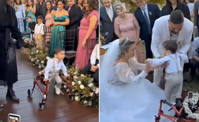 इंस्टाग्राम पर गुड न्यूज मूवमेंट ने यह वीडियो शेयर किया है, जिसमें एक छोटा बच्चा वॉकर पकड़कर चलता दिखाई दे रहा है. वेल ड्रेस्ड बच्चे की चाल देखकर यह अंदाजा लगाया जा सकता है कि वो स्पेशली एबल्ड है और बिना किसी सहारे के चल पाना उसके लिए मुश्किल है. इसके बावजूद उसके हौसले और खुशी में कोई कमी नहीं है. वो एक खूबसूरती से सजे वॉकर को पकड़ कर लोगों की भीड़ के बीच चलता हुआ आगे बढ़ता दिखाई देता है. बीच-बीच में कदम लड़खड़ाते हैं, लेकिन वो रुकता नहीं है, बल्कि आगे चलता चला जाता है. जहां दुल्हन बनी उसकी मां और दूल्हा बने उसके पिता उसके वेलकम के लिए खड़े दिखाई देते हैं. बच्चा उनके नजदीक आता है और दोनों बहुत प्यार से उसे गला लगा लेते हैं.