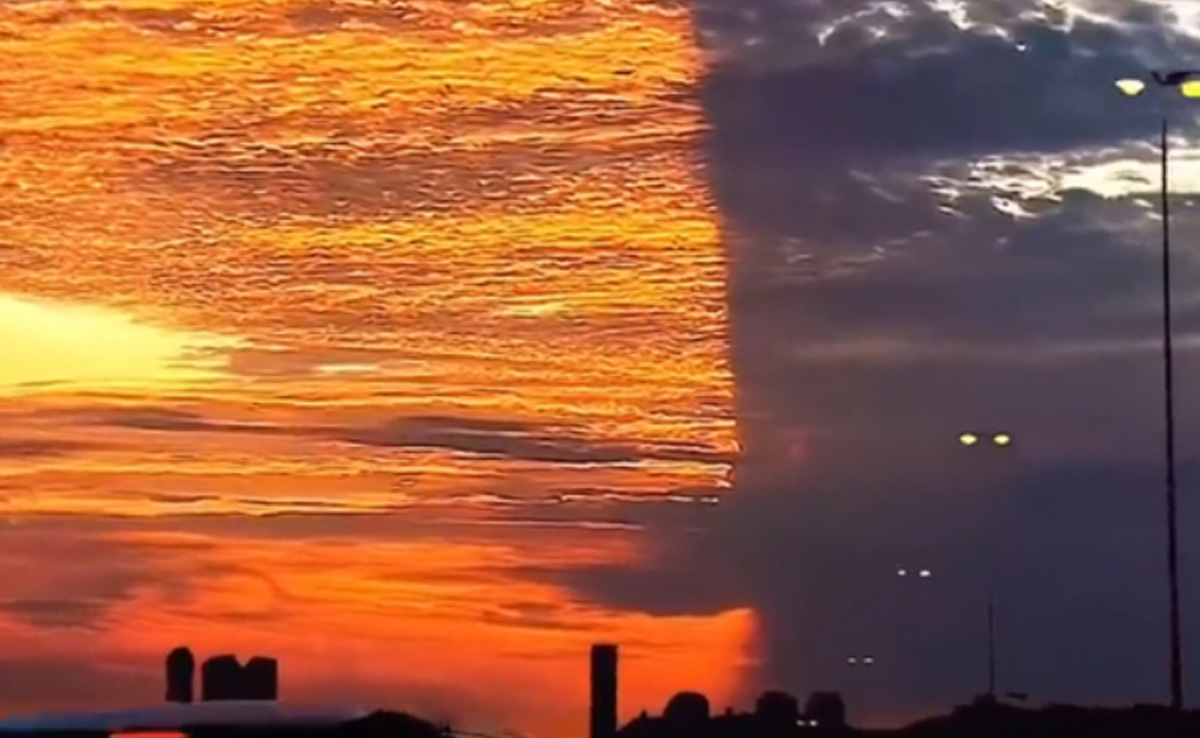वायरल हो रहे इस वीडियो में देखा जा सकता है कि, आसमान का एक हिस्सा तेज चमकते नारंगी, गुलाबी और पीले रंग से सराबोर नजर आ रहा है. वहीं दूसरा हिस्सा सूर्य को अपनी आगोश में समेट हुए, बैंगनी और नीले रंग में नहाया सा लग रहा है. ये रहस्यमयी देखकर दुनियाभर के लोग आश्चर्यचकित रह गए.