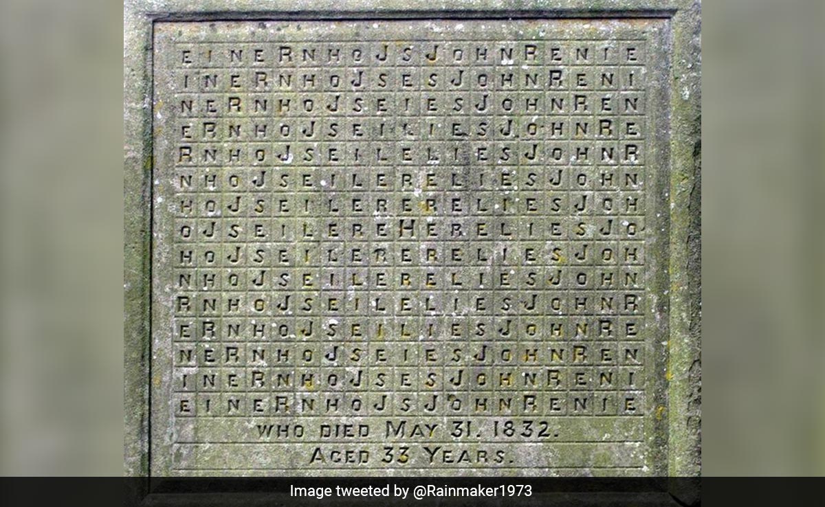 कब्र पर उकेरी गई पहेली की यह फोटो ट्विटर यूजर 'मेसिमो' ने पोस्ट की है, जो काफी वायरल हो रही है. इस पोस्ट में यूजर ने बताया है कि, यह पहेली वेल्स में जॉन रेनी की समाधि के ऊपर लगे पत्थर पर बनी हुई है, जिनकी मौत साल 1832 में 33 साल की उम्र में हुई थी. यूजर के मुताबिक, समाधि के पत्थर पर एक रेक्टेंगुलर पत्थर पर नक्काशीदार 285-अक्षर वाली एक्रोस्टिक पजल लगी हुई है. दावा किया गया है कि, इस पत्थर में लिखे वाक्य 'यहां जॉन रेनी है (Here lies John Renie)' को 46,000 अलग-अलग तरीकों से पढ़ा जा सकता है. इस पोस्ट के साथ एक लिंक भी दी गई है, जिसमें इस पहेली के बारे में विस्तृत रूप से लिखा हुआ है.