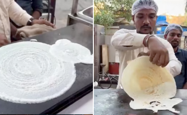 डोसा सेकने के बाद बंदा रुकता नहीं, बल्कि वो उसका पेट काटता है और उसे कटोरी शेप देकर उसके अंदर चटनी की कटोरी रख देता है. इसे देखने के बाद तो विदेशी शेफ्स भी इस कलाकारी के फैन हो जाएंगे. वैसे भी भारत में स्ट्रीट फूड के करोड़ों दीवाने हैं, जो फूड के साथ एक्सपेरिमेंट काफी पसंद करते हैं. इस वीडियो को अब तक चार लाख से ज्यादा लोग देख चुके हैं और देखने का ये सिलसिला अभी भी जारी है.