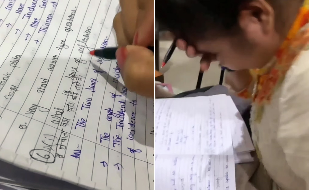 सोशल मीडिया प्लेटफॉर्म इंस्टाग्राम पर यह वीडियो RVCJ Media नाम के अकाउंट से शेयर किया गया है, जिसमें एक महिला टीचर अपने स्टूडेंट्स की कॉपी चेक करती दिखाई दे रही हैं. इस दौरान उनके एक्सप्रेशन देखने लायक हैं. वीडियो में देखा जा सकता है कि, स्टूडेंट्स की कॉपी चेक करते-करते टीचर का हंस-हंसकर बुरा हाल हो रहा है, क्योंकि आंसर पेपर में स्टूडेंट ने जो कमाल किया है, उसकी टीचर को उम्मीद नहीं थी.