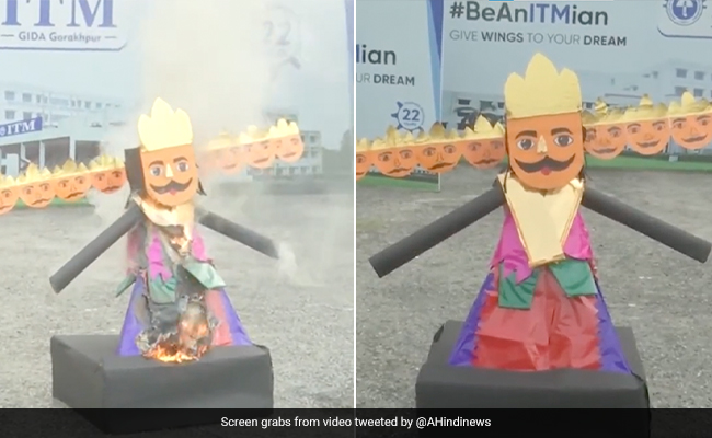 समाचार एजेंसी एएनआई द्वारा शेयर किए गए एक वीडियो में, छात्रों के एक समूह ने अपने प्रोफेसर के मार्गदर्शन में, एक बटन के क्लिक पर सेकंड के भीतर दो-तीन फीट लंबे रावण के पुतले को आग लगाते हुए दिखाया. वीडियो के साथ कैप्शन में लिखा है, "उत्तर प्रदेश: प्रौद्योगिकी और प्रबंधन संस्थान, गोरखपुर के बी.टेक छात्रों ने मोबाइल फोन के माध्यम से 'रावण' का पुतला जलाने का एक स्मार्ट तरीका खोजा है."