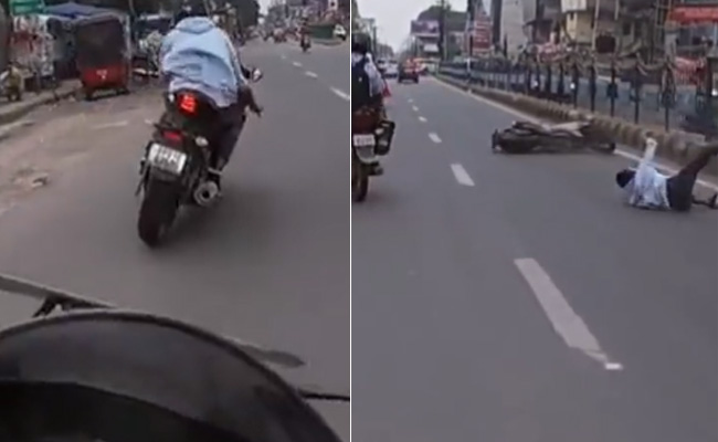 हाल ही में वायरल हो रहे इस वीडियो में एक बाइक सवार शख्स हवा से बातें करता नजर आ रहा है. इस दौरान वो शख्स चलती सड़क पर अपनी बाइक को लहराते हुए स्टंट करता दिखाई देता. देखते ही देखते शख्स बाइक की स्पीड बढ़ा लेता है और राह पर चलती गड़ियों को पीछे छोड़ने लगता है, लेकिन अगले ही पल शख्स का बैलेंस बिगड़ जाता है और वो सड़क पर घिसटता हुआ बाइक से दूर जा गिरता है. ये तो गनीमत थी कि शख्स ने हेलमेट पहन रखा था, जिस कारण उसकी जान बाल-बाल बची.