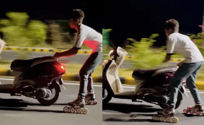 आपने स्केट लवर्स को सड़क पर स्केटिंग (Skating) करते हुए तो देखा होगा, लेकिन क्या आपने कभी किसी को चलती सड़क पर स्केटिंग के साथ-साथ स्कूटी चलाते देखा है. अगर आपका जवाब न है, तो यह वीडियो देखना बनता है. वायरल हो रहे इस वीडियो में एक लड़का सड़क पर स्केट्स पहनकर स्कूटी (Scooty) चला रहा है. देखते ही देखते लड़का स्कूटी को बैलेंस कर, पीछे से स्कूटी को पकड़कर स्केटिंग करने लगता है. वीडियो में स्कूटी की रफ्तार देखते ही बन रही है. चौंकाने वाली बात है कि जब लड़का सड़क पर यह खतरनाक स्टंट कर रहा होता है, तब उसके बगल से गाड़ियां भी गुजर रही होती हैं. इस दौरान एक जरा सी चूक एक बड़ी दुर्घटना का रूप ले सकती थी.