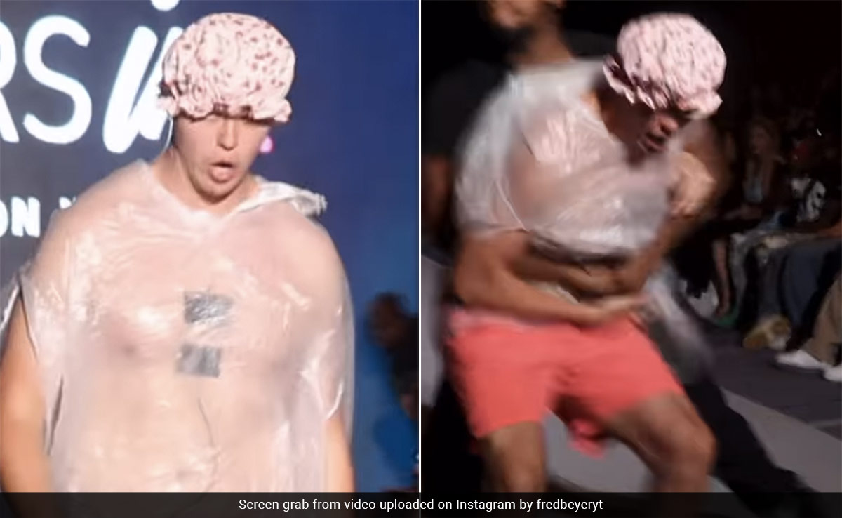 यह वीडियो न्यूयॉर्क फैशन वीक (Rampwalk Funny Video) का बताया जा रहा है, जहां हाल ही में एक अजीबोगरीब घटना देखने को मिली. वीडियो में देखा जा सकता है कि, अचानक रैम्प पर एक शख्स ट्रैश बैग, शॉवर कैप और गुलाबी शॉर्ट्स के साथ कैटवॉक करने लगता है. फैशन शो में इस शख्स को देख हर कोई हैरान रह जाता है. वीडियो में दिख रहे फ्रेड बेयर नाम के 21 वर्षीय मसखरे ने अपने अपने यूट्यूब चैनल के लिए इस मजेदार कंटेंट की चुपके से प्लानिंग बनाई थी.