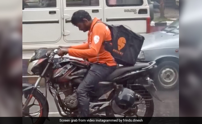 वायरल हो रहे इस वीडियो में डिलीवरी ब्वॉय को ट्रैफिक प्वाइंट पर मोटरसाइकिल पर बैठे हुए देखा जा सकता है. वह बारिश में भीग रहा है लेकिन बिना किसी परवाह के वो अपने काम को पूरा करने में जुटा हुआ है.