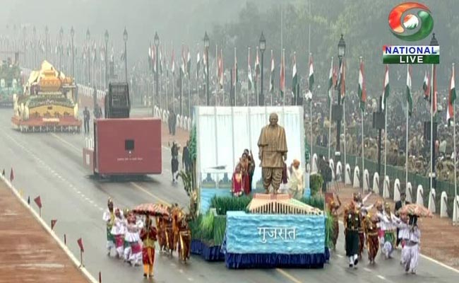गुजरात की झांकी सरदार सरोवर परियोजना और स्टेच्यू ऑफ लिबर्टी को ध्यान में रखकर बनाई गई थी। अरुणाचल प्रदेश की झांकी में वहां की इदु मिशमी जनजाति के इगु डांस को प्रदर्शित किया गया था।