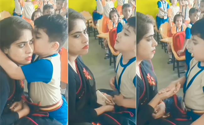 सोशल मीडिया पर तेजी से वायरल होते इस वीडियो में एक बच्चा मैडम से अपनी गलती की माफी मांगते हुए उन्हें मनाता नजर आ रहा है. वीडियो में देखा जा सकता है कि कैसे जब बार-बार माफी मांगने पर भी मैम नहीं मानतीं, तो बच्चा मैम के दोनों गालों पर किस करते हुए वापस गलती ना दोहराने की बात कहता है. बच्चे की मासूमियत से भरे इस वीडियो को देखकर हर कोई अपना दिल हार बैठ रहा है. वीडियो देखने के बाद लोग कह रहे हैं कि, ऐसा स्कूल मेरे बचपन में क्यों नहीं था. वीडियो में बच्चा अपनी मैम को इस तरह मनाता नजर आ रहा है मानो जैसे बच्चा अपनी मां से बात कर रहा हो. हालांकि, यह स्पष्ट नहीं हो पाया है कि वीडियो कहां का है.