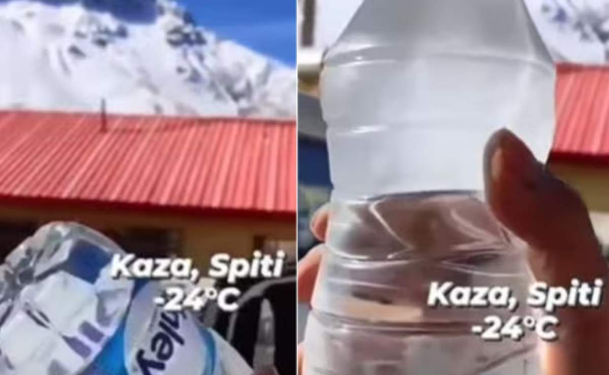 दरअसल, वायरल हो रहा यह वीडियो स्पीति के काजा गांव का बताया जा रहा है, जो कि हिमाचल प्रदेश के सुंदर पहाड़ों में मौजूद एक खूबसूरत जगह है. यहां -24 डिग्री सेल्सियस में लोग घूमने का प्लान बना रहे हैं और कुछ यहां की खूबसूरती के वीडियो सोशल मीडिया पर पोस्ट कर रहे हैं. बताया जा रहा है कि, काजा गांव में बेहद तेजी से ठंड बढ़ती है. हाल ही में वायरल यहां के वीडियो में देखा जा सकता है कि, कैसे पानी की बोतल को जमने में जरा सा भी वक्त नहीं लगता. पल भर में ही पानी की बोतल सख्त होकर जमना शुरू हो जाती है.