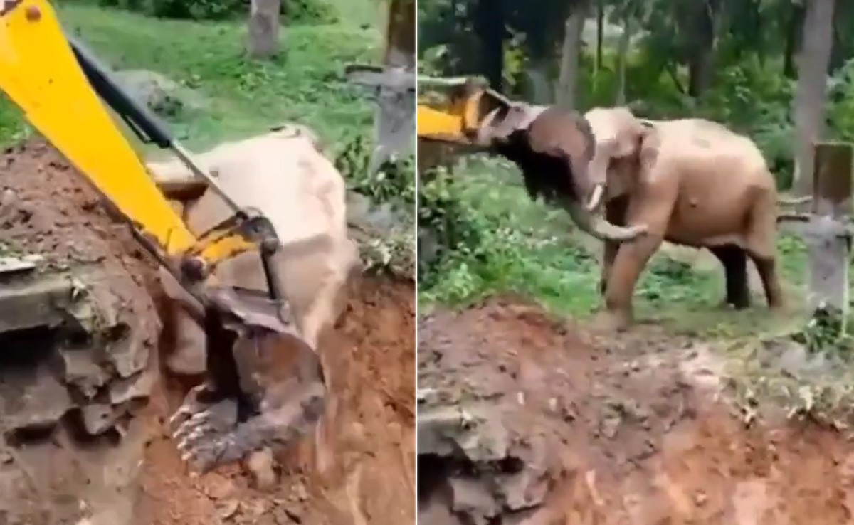 वायरल हो रहे इस वीडियो में देखा जा सकता है कि कैसे एक हाथी को गड्ढे से बाहर निकाला जा रहा है. हाथी गड्ढे से बाहर निकलने के लिए संघर्ष करता दिख रहा है. लेकिन जेसीबी की मदद से बाहर निकल जाता है.