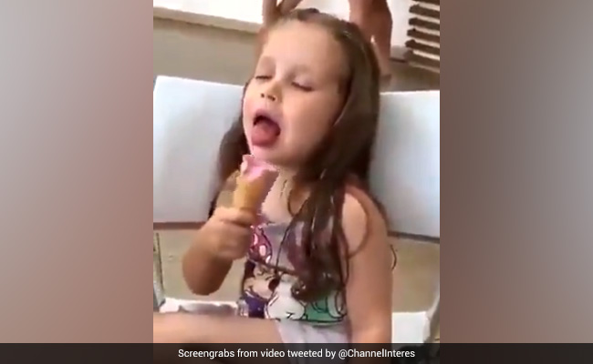 नींद में आइसक्रीम खाते हुए बच्ची की दिखीं ओवरलोडेड क्यूटनेस