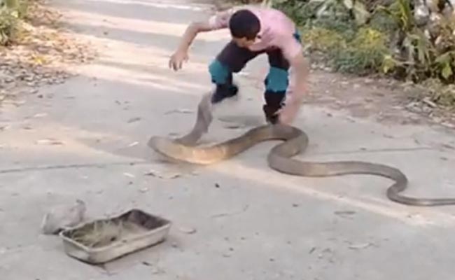 Social Media पर सांप के ख़तरनाक वीडियो देखने को मिल जाते हैं. ऐसे वीडियो देखने के बाद दिल दहल जाते हैं. सोशल मीडिया पर एक वीडियो वायरल हो रहा है. वायरल वीडियो थाईलैंड (Thailand) का बताया जा रहा है. वीडियो में देखा जा सकता है कि एक शख्स विशाल किंग कोबरा (King Cobra) को अपने हाथ में पकड़े हुए है. सांप बहुत ही ज़्यादा भारी था, इसके कारण लोगों को बहुत ही ज्यादा परेशानी हुई. न्यूज़ वेबसाइट थाइगर के अनुसार, दक्षिणी थाई प्रांत क्राबी में स्थानीय लोगों ने सांप के एक ताड़ के बागान में घुसने और एक सेप्टिक टैंक में छिपने की कोशिश करने के बाद अधिकारियों को सूचित किया.