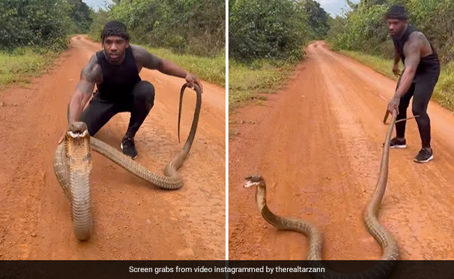 यूं तो सोशल मीडिया पर एक से बढ़कर एक वीडियो वायरल होते रहते हैं. कई बार कुछ वीडियो बहुत ही अच्छे होते हैं, वहीं कई बार ऐसे होते हैं, जिन्हें देखने के बाद हम डर जाते हैं. अभी हाल ही में सोशल मीडिया पर एक वीडियो वायरल हो रहा है. इस वीडियो में देखा जा सकता है कि एक शख्स एक विशाल किंग कोबरा को नंगे हाथों से पकड़ने की कोशिश करते हुए दिखाई दे रहा है. लेकिन, जैसे ही शख्स किंग कोबरा को अपने हाथों में पकड़ता है उसके बाद जो हुआ वो देखकर आपके होश उड़ जाएंगे.इस वीडिय को अपनी शर्त पर ही देखं.